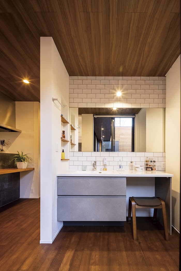 室内は、仕切りや廊下を極力省いた開放感のあるLDKに中庭から光が降り注ぎ、センスの良い家具を置けばまるでインテリアショップのようなおしゃれな雰囲気に。「ヴィンテージ&モダン」という相反するものが共存する遊び心満載の家が完成しました。
