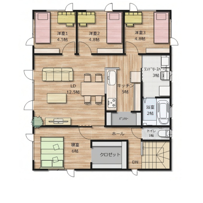 子供部屋3つはLDKと隣接。無駄がない設計かつコミュニケーションも自然と生まれる間取りに。