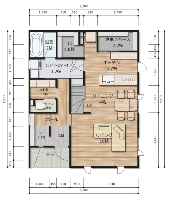 コンパクトな家事動線、広々ランドリールーム、パントリー・SCLなどいずれも柔軟に対応可能です!