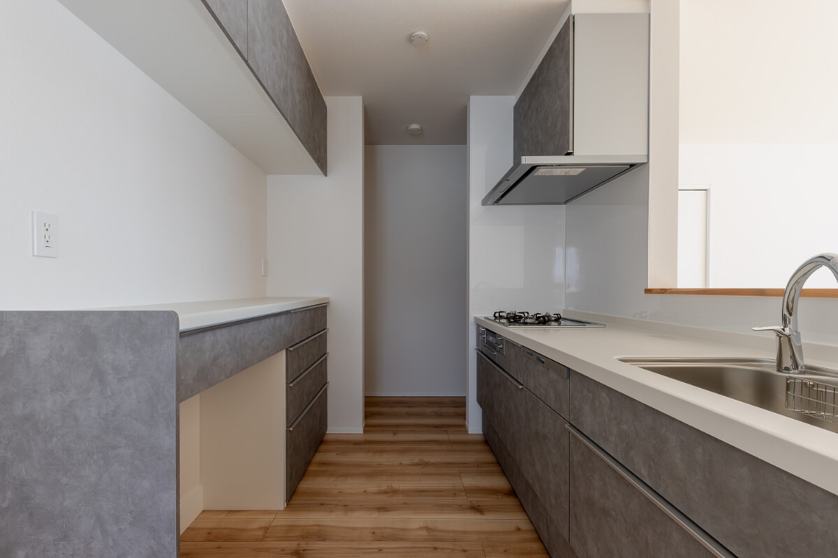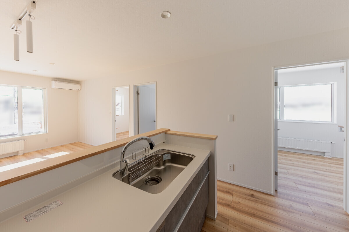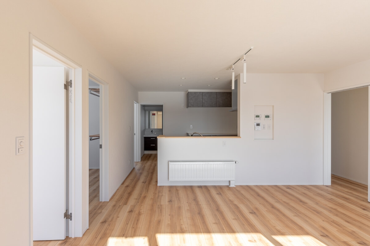 一番の特徴は、それぞれの間取りにほとんど差がないこと。リビングや水回り、寝室などの配置が揃えられているため、足音や水の音など、生活音のストレスがぐっと抑えられ、生活リズムの干渉が少なくなります。 また、キッチンや浴室などの配管ルートの最短にできるため、建築コストを抑え、メンテナンスがしやすいメリットも。