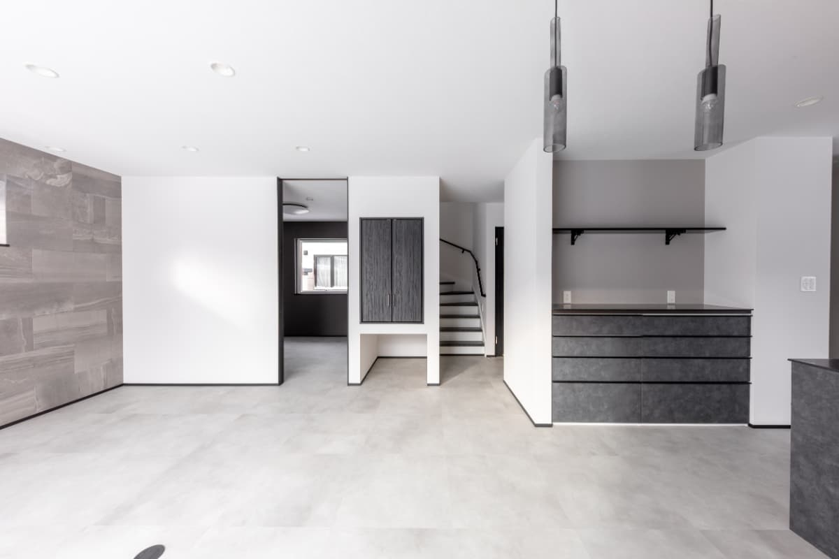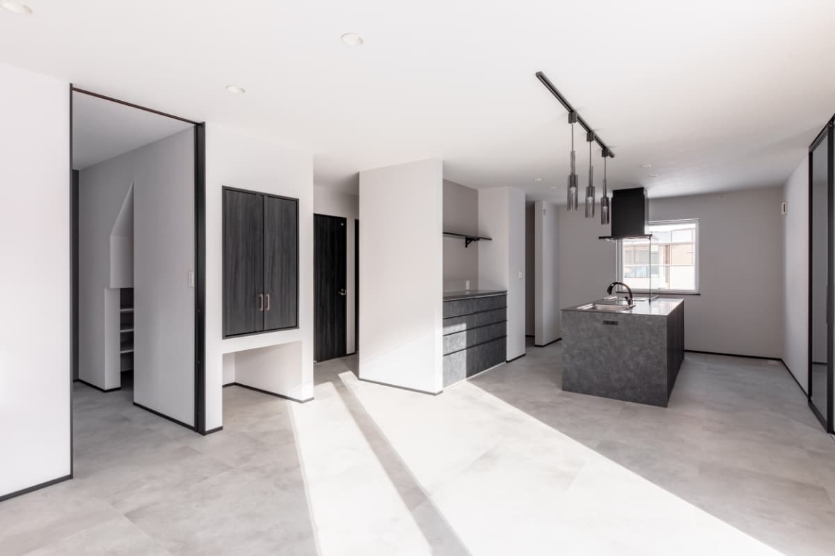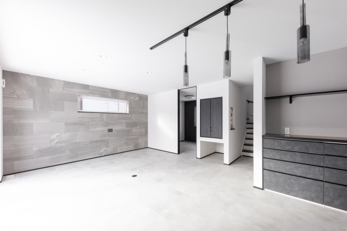 グレーを基調に、素材感と陰影で魅せるモダンなLDK。